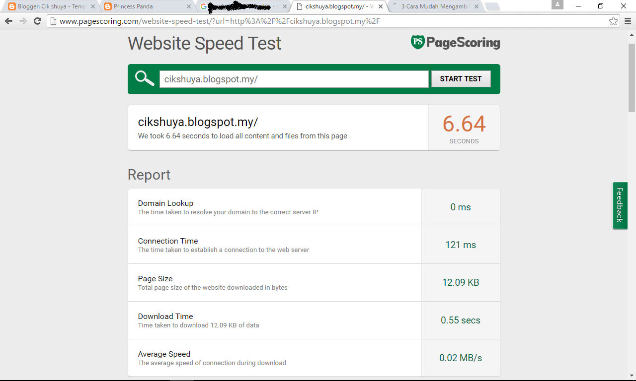 Dah keluar macam kat atas tuu, korang masukkan la url blog korang kat kotak sebelah start test tuu. Dah letakk ? Tekan start test. Lepas dah tekan tu, hasil nya macam kat bawah ni :)